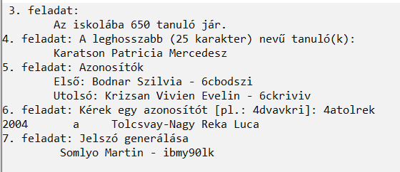 meghatározza a legmagasabb tanuló adatait. Számolja ki a TTI jellemző adatot és írja ki minden